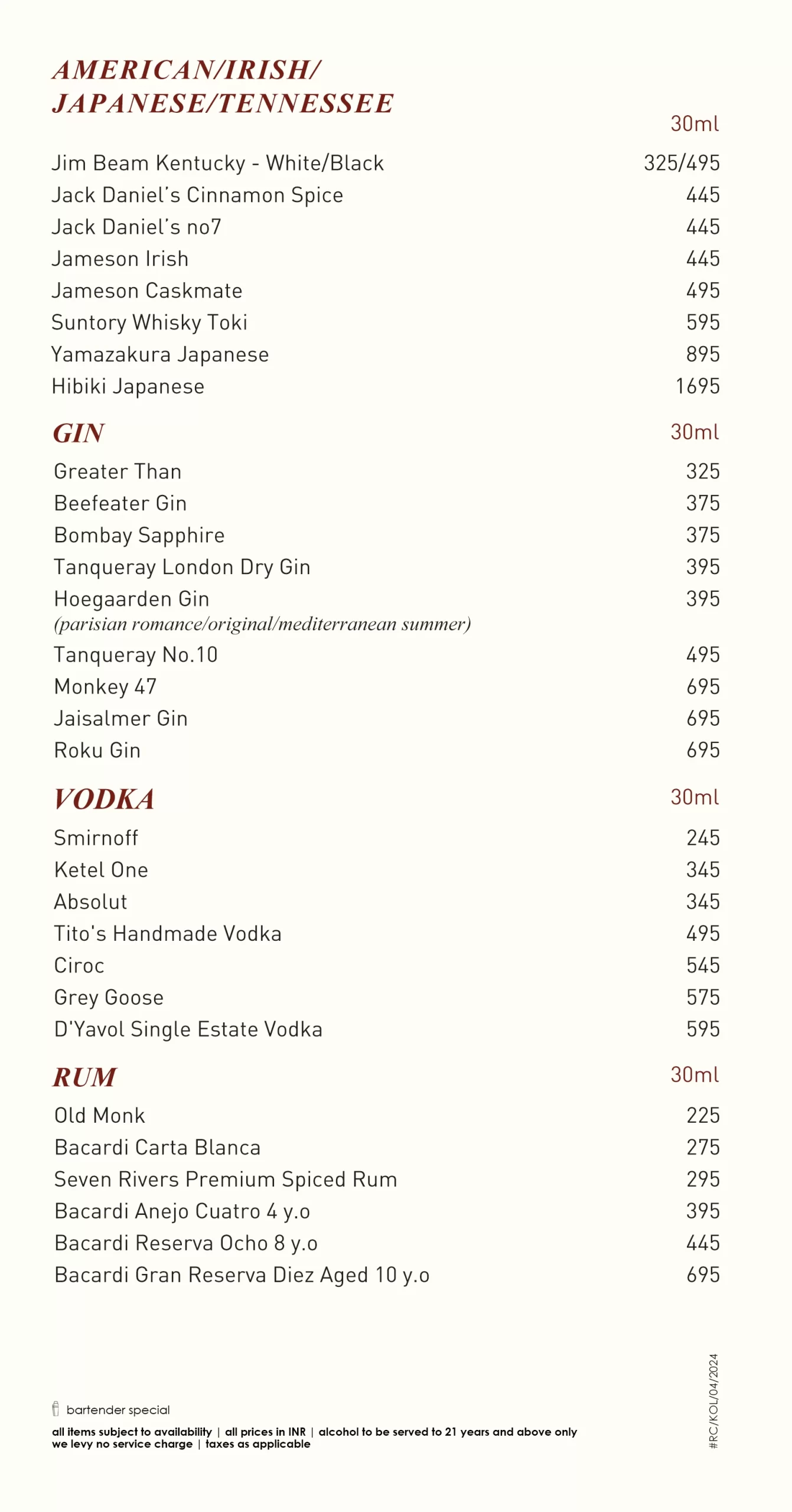 Beverage Menu